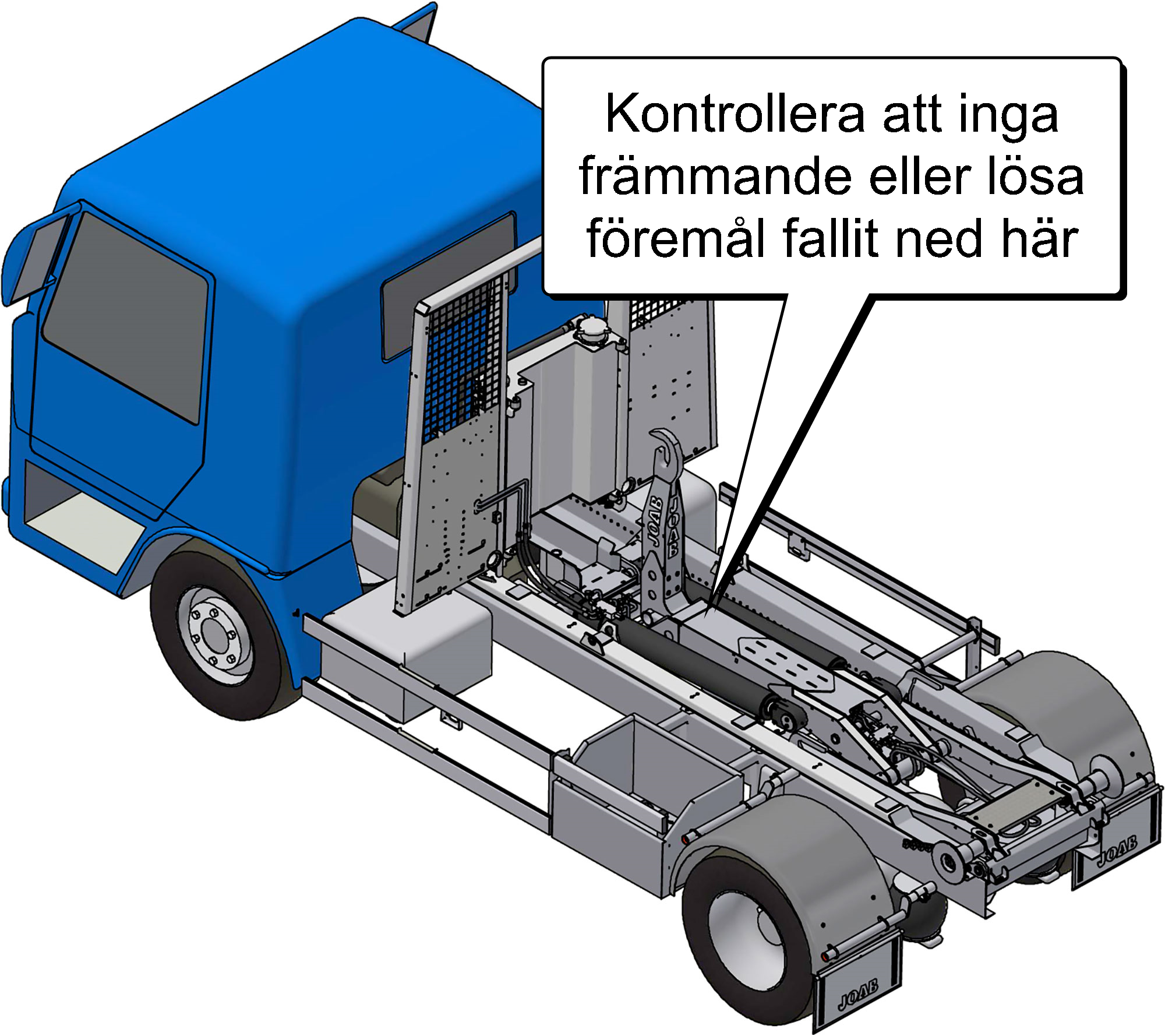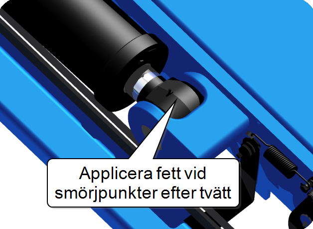 Om du rengör kring smörjpunkter, komplettera alltid med nytt fett efter tvätten. För mer information om lastväxlarens smörjpunkter, se nedan.