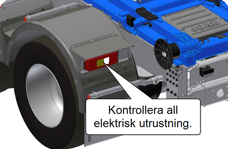 Kontrollera att belysning och övrig elutrustning fungerar. -
